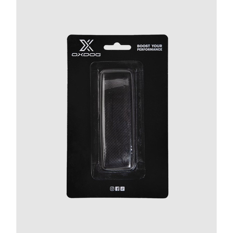 Czarny ochraniacz chroniący ramę rakiety przed uderzeniami. Z logo OXDOG, o wymiarach 372 × 42 mm, z wykończeniem typu leather feel (imitacja skóry).